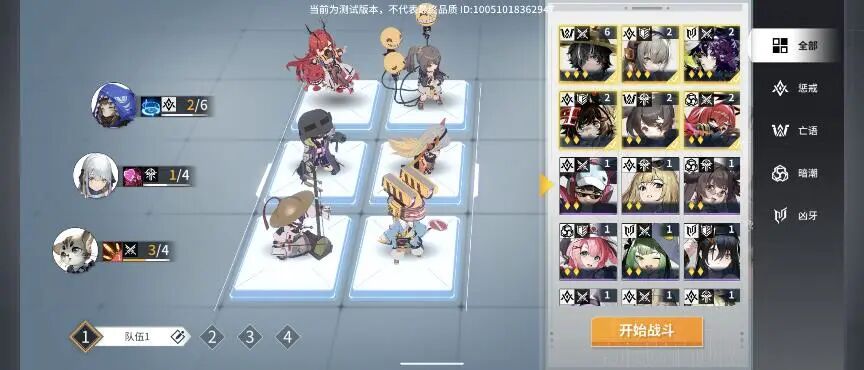 游戏的战斗玩法倒是有两把刷子。相较于传统的回合制战旗,《代号:STS》加入了【队员】的设定,即游戏除了最多可以上场六个战斗角色外,每一场战斗还可以携带最多三个【队员】。