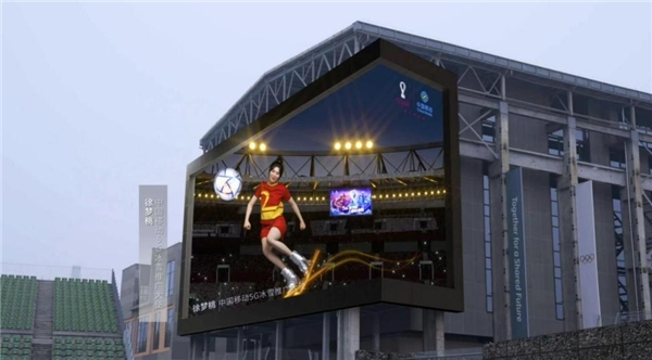 世界杯期间,北京首钢园和三里屯出现了一个集结多位“数字人大咖”的裸眼3D大屏,吸睛力十足,引不少路人驻足观看。通过这个巨型裸眼3D大屏,不仅可以看到不同的数字人在卡塔尔城市沙漠与世界杯足球场的空间场景中快速穿梭,还能看到足球飞跃“出屏”,让观众身临其境,代入感十足。