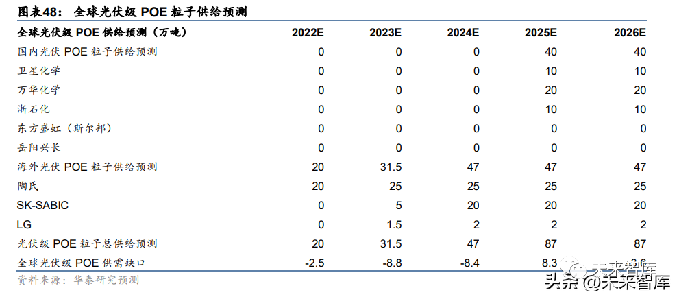 展望:EVA 粒子紧缺持续到 2023 年,POE 粒子渗透率上升