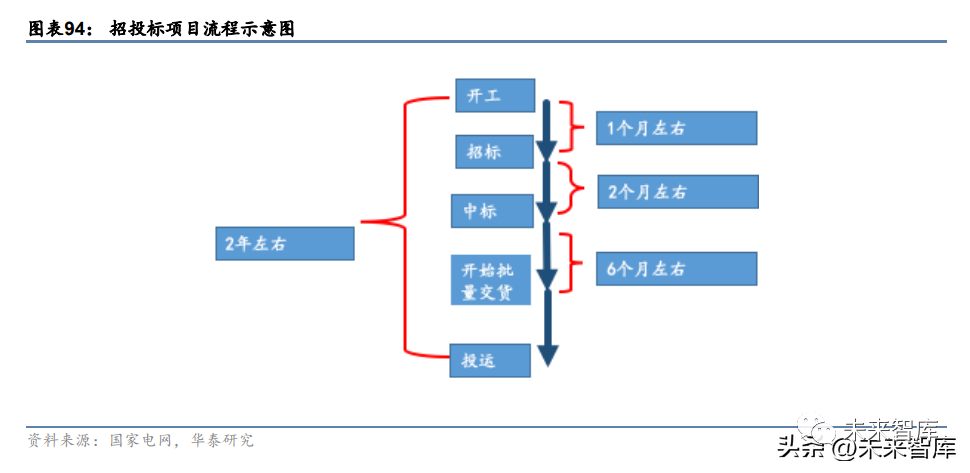 开工时间不确定性最高,开工后两年建成。特高压项目不同设备组件的招标时间有所差异, 通常在项目开工三个月内,电网公司在在国家电网和南方电网的电子商务平台进行招标活 动,我们预计特高压项目在开工后 9 个月以内设备采购业绩释放,新批准的输电项目有望 在两年内体现在主设备公司业绩中,三年内完成项目投产。