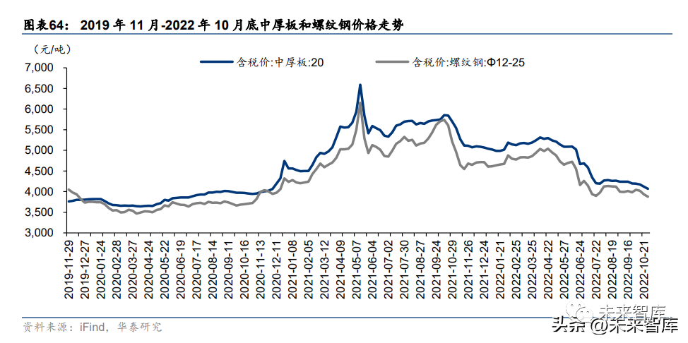 受益于钢价下滑,塔筒/铸锻件/主轴等环节毛利率有望修复。22 年 4 月以来,不同种类钢 价均有走弱迹象,10 月底中厚板和螺纹钢含税价为 4069、3876 元/吨,较 4 月初下降 22.45%、 21.59%。钢铁价格与风电企业毛利率呈负相关关系,随着钢价不断下跌,预计原材料占比 较高的风电企业如铸锻件(日月股份)、塔筒(海力风电、大金重工)等环节企业明年毛利 率有望修复。