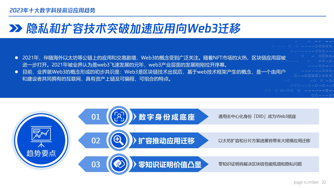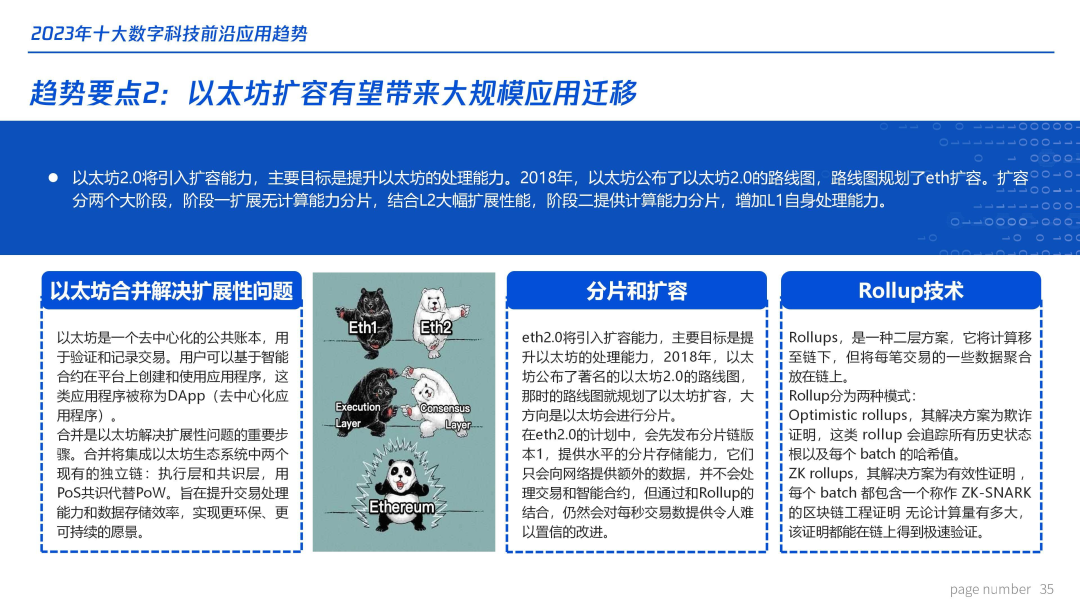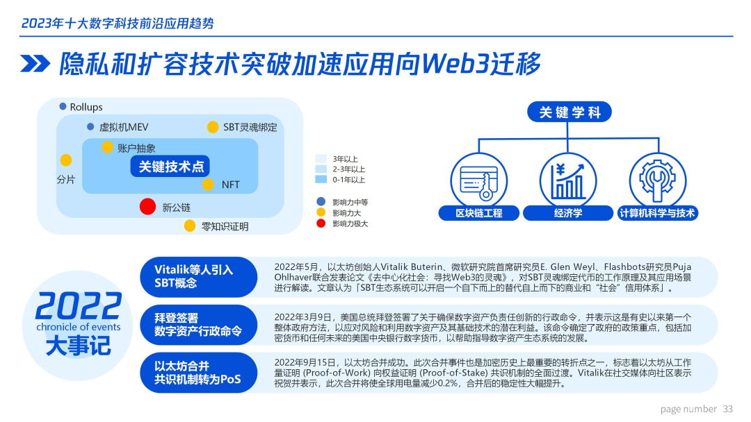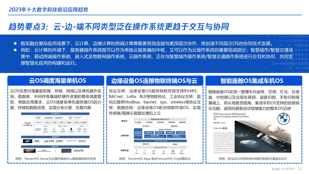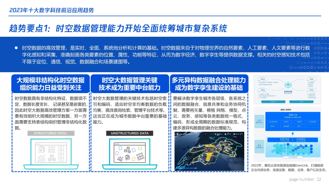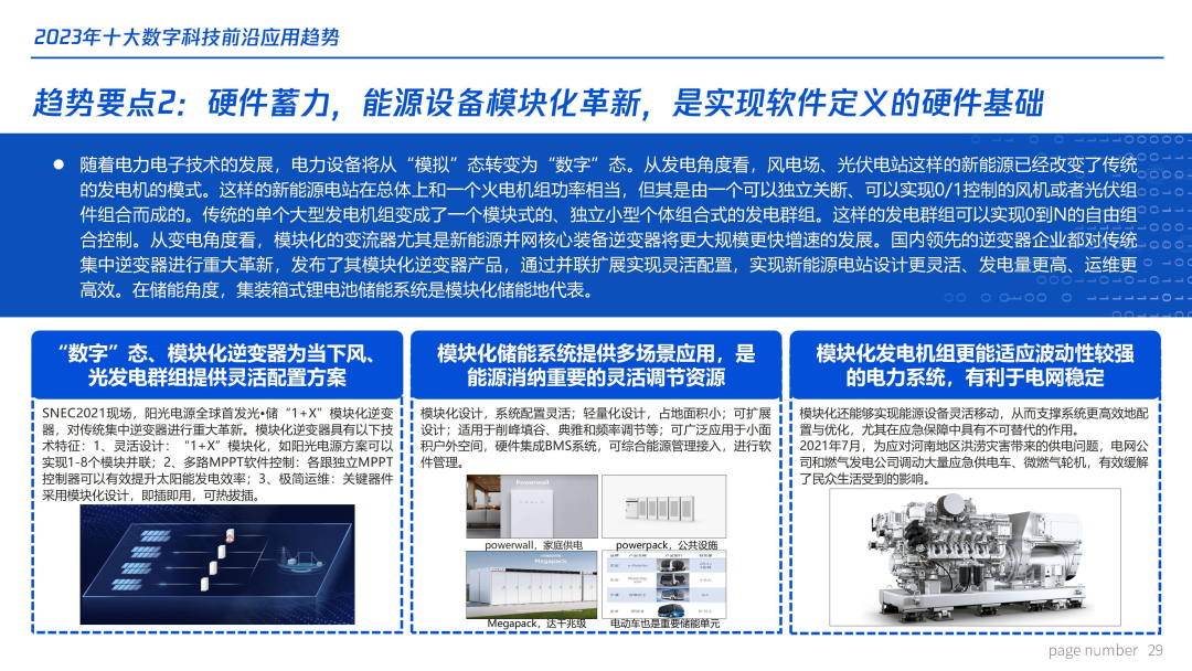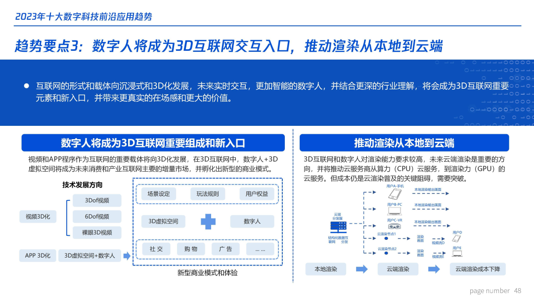 继21年的“变量”、22年的“融合”,我们看到2023年数字科技的发展呈现出明显的“升维”特征。因此,我们将新一期的报告命名为《升维 - 2023年十大数字科技应用趋势》。报告从数字科技的科研突破、重大事件和创新应用等方面,对高性能计算、泛在操作系统、云计算、数字人、时空人工智能、能源互联网、Web3、机器人、数字办公、产业安全共10个热点方向进行了深入分析,洞察前沿科技的重点趋势。