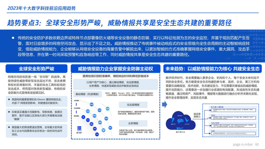 随着“数实融合”的深入发展,数字技术的在各行业中广泛应用,引发了潜在的新型基础设施安全、数据安全、数字产业链安全、网络安全等一系列安全问题,面对挑战,一体化防护和一站式数据治理、零信任安全体系、威胁情报、AI、大数据、隐私技术等技术及理念驱动解决新型安全问题的新思路、新方法和新路径。