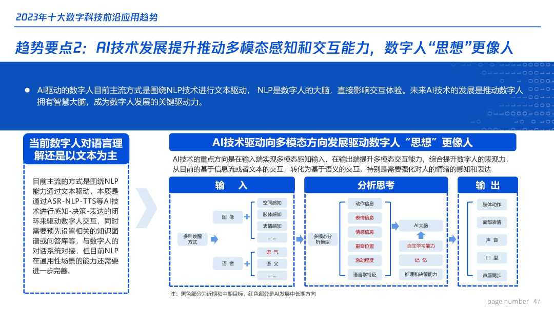 目前数字人产业正处于快速发展期间:离线渲染、非交互类型的数字人仍是主流,在数字化营销、文娱等领域应用广泛;而AI驱动的数字人在行业服务领域以及虚拟分身数字人在虚拟空间的应用都处于爆发前期。
