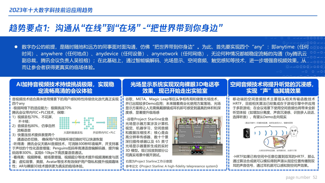 数字科技的加速发展,不仅让“联”更加泛在,也让“真”更为身临其境,在远程也可以达成感知和操作。报告中提出的云计算、泛在OS、量子计算、Web3等正在重塑ICT的基础设施,机器触觉的增强,将让远程感知更为真实,基于远程会议和协作文档的数字办公将走向无界、在场和知识共创,数字人正成为新的交互入口,安全共生为产业保驾护航,这些技术的迭代演进,将为全真的下一步发展提供坚实的助力。全真还要服务真实的场景,解决实际的问题,在城市、能源、制造、交通、教育、文旅、金融、零售等千行百业发挥更大的价值。