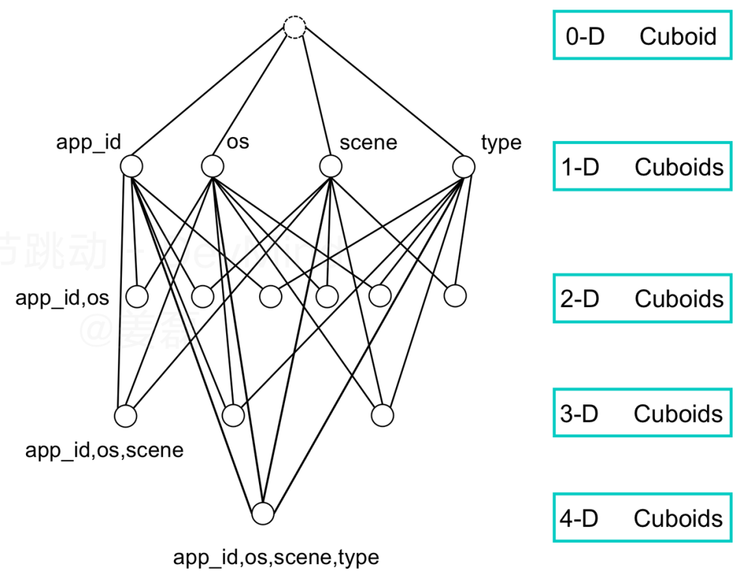 DevMind 同样将全过程分为三步:模型设计、指标定义、数据消费。在模型设计过程中,设计者确定 Cube 粒度,以及涉及的维度组合。在数据生产过程中,完成所指定的 Cube 粒度聚合和剪枝优化;在指标定义时,定义者仅会基于已有的组合进行指标和维度设计;在数据消费阶段,用户自助分析时由即席查询引擎自动注入 CuboID,从而使用户(消费者)无须感知底层模型的复杂性。