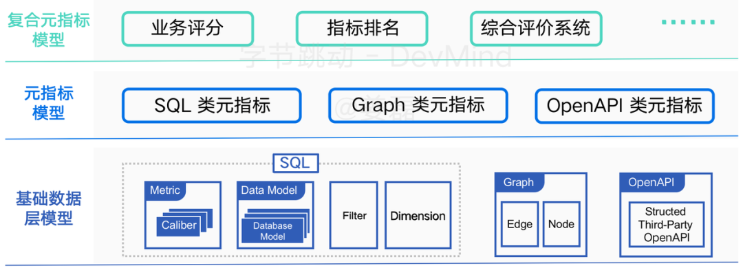 指标定义基于指标中台体现,指标中台的核心在于元信息数据模型设计,对其最重要的要求是:强悍且可扩展的数据表达能力。为了实现这个要求,需要对数据模型进行分层解耦的模块化设计,并保证每层模型均是结构化的。
