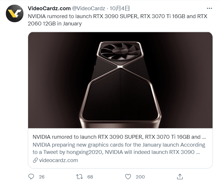 英伟达的RTX 30系显卡如今已经推出了原版以及Ti系列产品线,看起来产品线已经完整了,那么下一步是不是就该准备RTX 40系了呢?事实上并非如此。根据Videocardz援引爆料人消息,英伟达将于明年1月推出RTX 3090 Super、RTX 3070 Ti 16GB与RTX 2060 12GB显卡。该消息称,英伟达不仅在准备新的安培SUPER卡,而且还将刷新其图灵架构显卡产品的阵容。据爆料,全新推出的RTX 3090 Super将会采用满血版的GA102核心,核心编号GA102-400,开放全部10752个流处理器(RTX 3090 10496个),继续搭配24GB GDDR6X显存。而RTX 3070 Ti的新版本依旧归属于Ti系列,而非Super,其配置也相较于原版并没有太大区别,仅仅是显存翻倍,达到16GB GDDR6X。而重新复活的RTX 2060也将会搭载12GB显存。此外,在笔记本移动端,爆料称RTX 30 Super系列还将会推出RTX 3090 Super、RTX 3080 Super、RTX 3070 Super、RTX 3060 Super,预计明年1月发布,配合英特尔全新的12代酷睿系列处理器,组成新一代游戏本平台。不知道届时新显卡的推出会不会对于如今依旧高涨的显卡价格造成一定的影响,不过如今显卡行业的缺货依旧是一个严重的问题。因此有些厂商也想出了办法来缓解该情况。