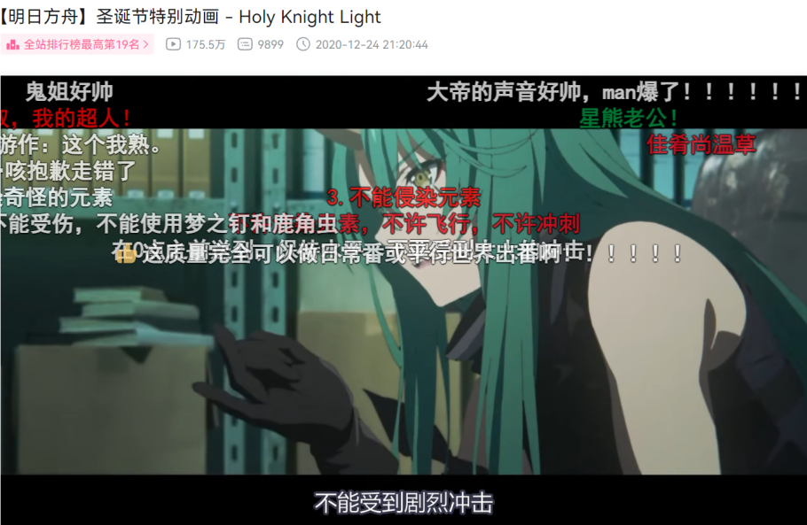 而对动画情节的共鸣,建立在对游戏的理解之上。一个方舟玩家在弹幕的引导下,可以从每一个角落,回忆一起走过的点点滴滴,得到意想不到的欢乐;