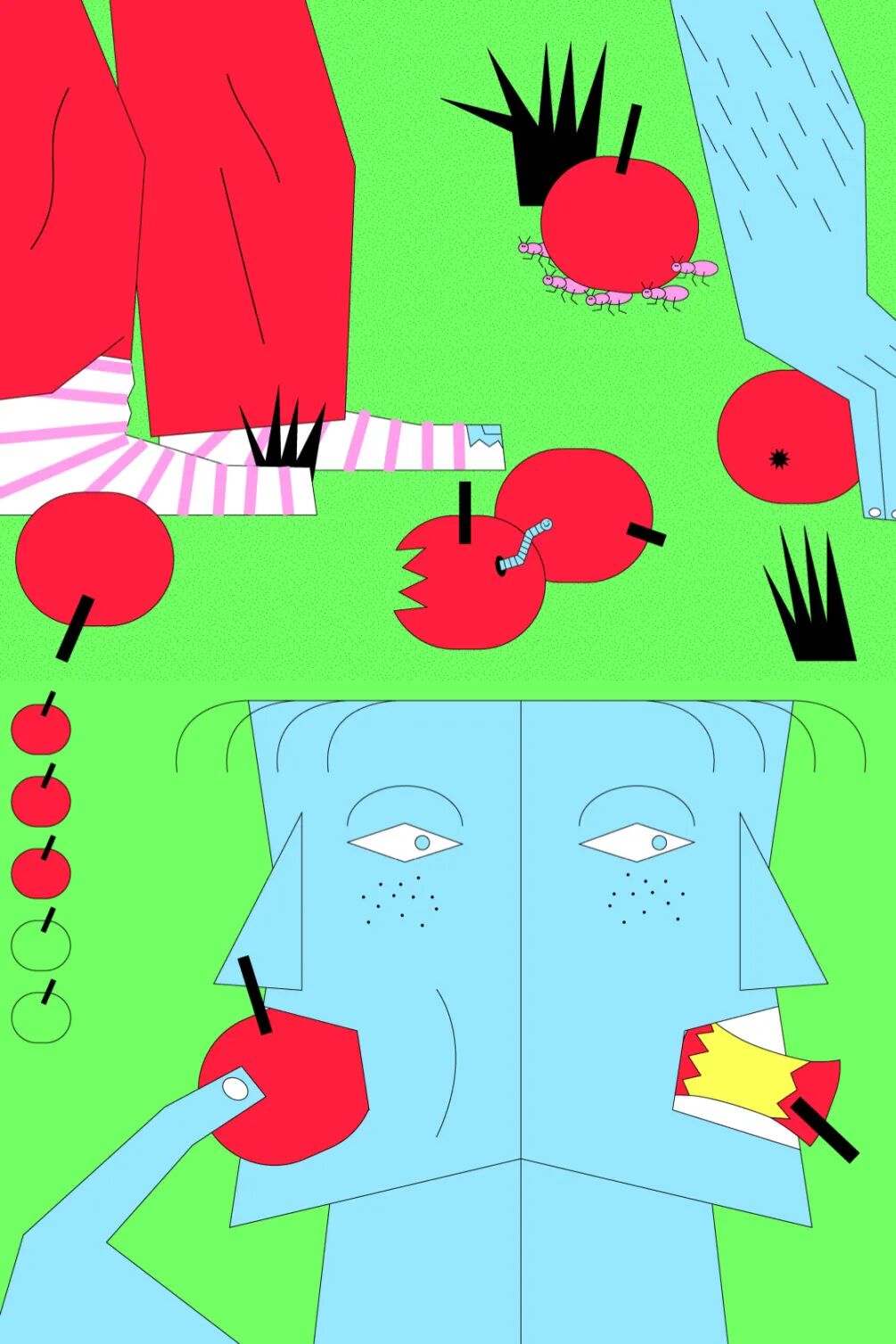 独立插画创造者,2020年中国美术学院毕业。风格受神话、历史故事以及古早电子游戏视觉影响,用像素点阵和复古饱满的色调构建怪诞、幽默的情绪。通过隐喻的方式及轻松的画面讲述现实。在漫画《WO社区》里,借虚构的乌托邦社区表达现代年轻人在大城市中难以找到归属感,对“家”这一概念进行思考。