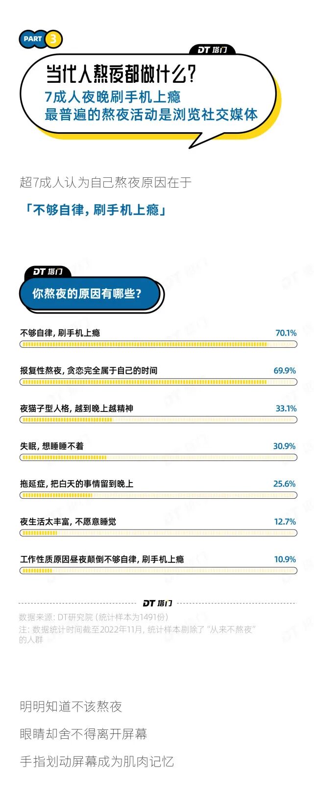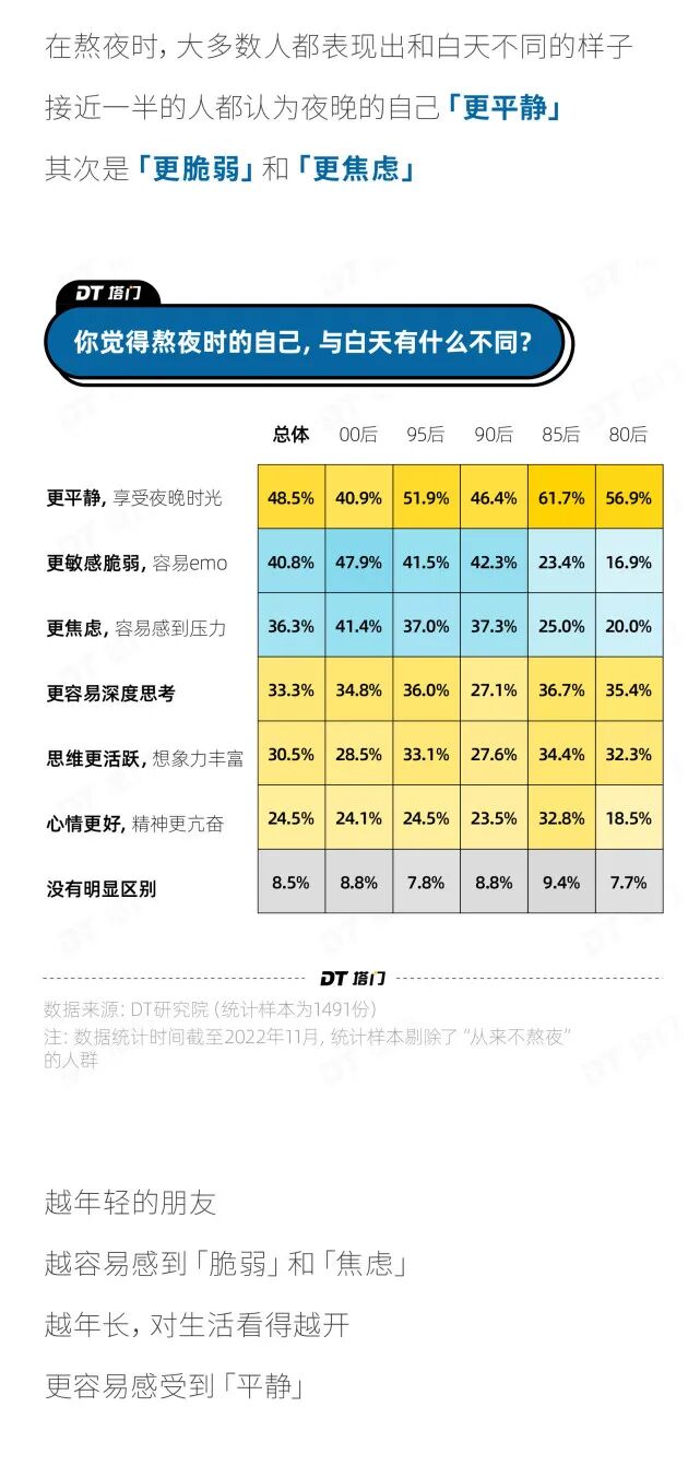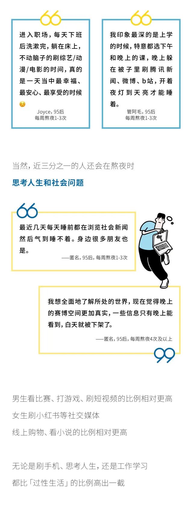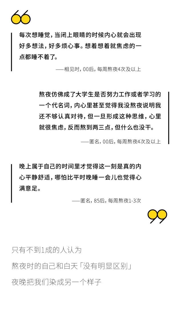 另一方面,超过8成人表示,他们从熬夜中获得了精神上的快感。它或许是一种对自我生活的掌控感,又或许是一种远离嘈杂、终于得以清静的渴望。