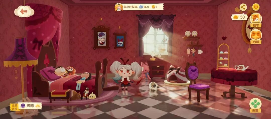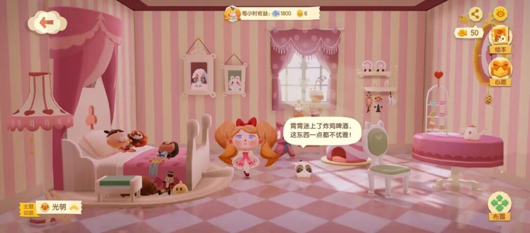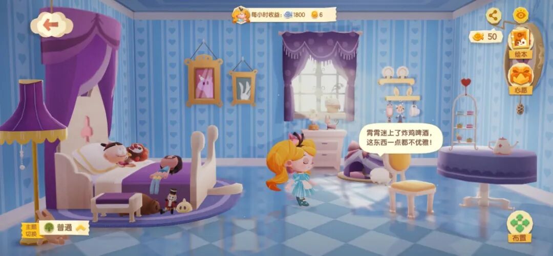 而当玩家把艾莉莉邀请进公寓居住,对她内心的探索才刚刚开始。在游戏里,人物内心的变化,是通过住房背景的装修风格来改变的。最开始,艾莉莉表现出的是一个普通的小女孩,拥有天蓝色的房屋装扮,天真活泼。