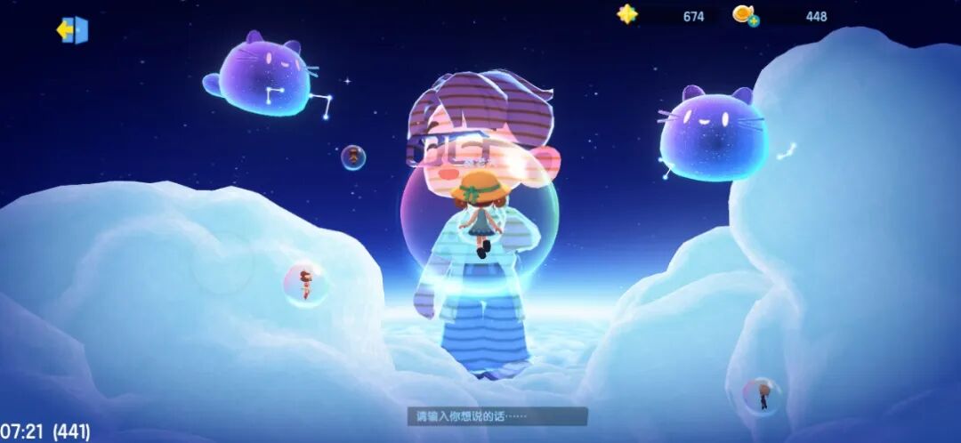 还值得一提的是,为了迎接开服,官方邀请了毛不易入驻猫岛,玩家可以在线上听一曲演唱会。我抱着完成任务拿奖励的心态尝试进入演唱会活动所在的岛屿,没想到游戏内部藏了一个非常类似“元宇宙”的空间。演出期间,玩家可以围绕着毛不易巨大的全息投影漂浮跳跃,一首歌的过程还会反复几次切换场景和互动玩法,颇有沉浸感。