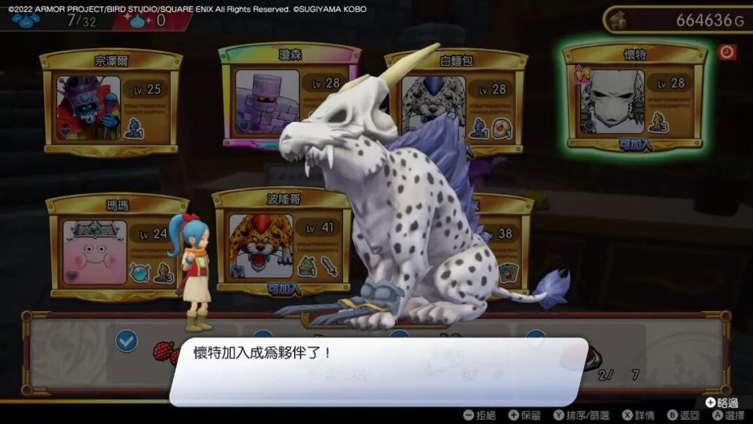 另一方面,就像“怪兽篇”一样,《勇者斗恶龙:寻宝探险团》的队伍扩充方式,同样是针对敌人进行的劝诱,但稍有不同的是,《勇者斗恶龙:寻宝探险团》将前者中可视化的劝诱成功率隐藏了起来,并对劝诱过程做出了最大程度简化。除去特殊情况外,所有玩家击败怪物都有概率触发“入团志愿”,只要交付特定的道具,便可以将其纳入探险团。