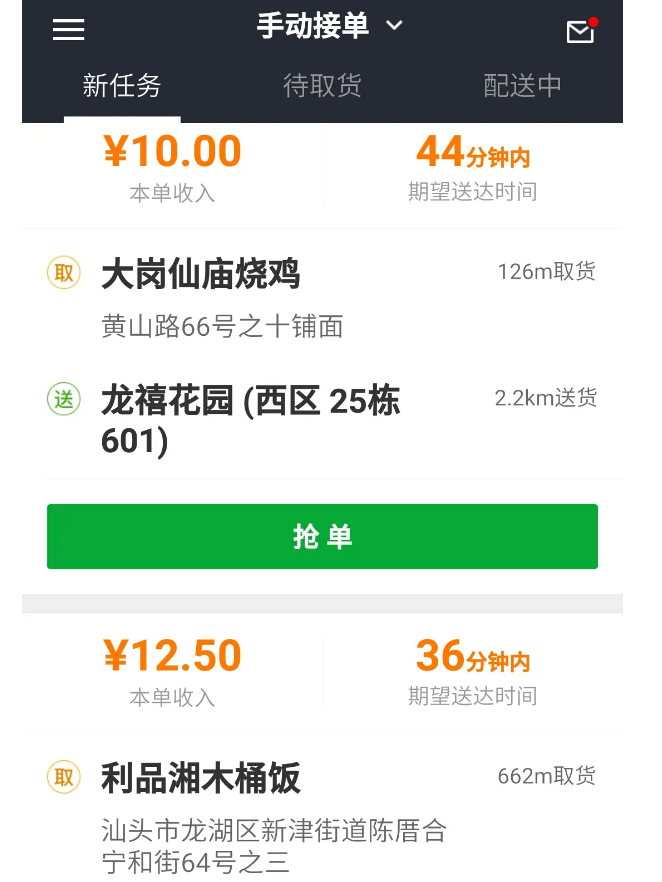 对于骑手来说最重要的当然就是“跑单”。除了系统为骑手推送的订单,“跑单”更像是冒险者协会贴上去的悬赏任务,任务的要求、赏金都明码标价地贴在大厅,等待有实力的“冒险者”接下。