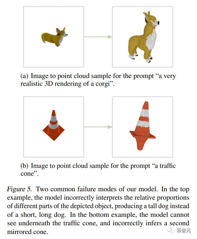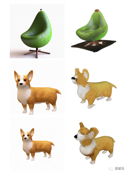 从计算的角度来看,点云更容易合成,但它们无法捕获对象的细腻形状或纹理,这是目前Point-E的一个短板。