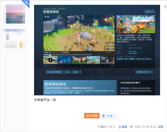 12月20日,一款名为《新星岛物语》(Novastella Island)的二次元模拟经营类游戏,原本会在下午开始发售。而一场“差评战争”,本来也将随着它的发售应声打响。