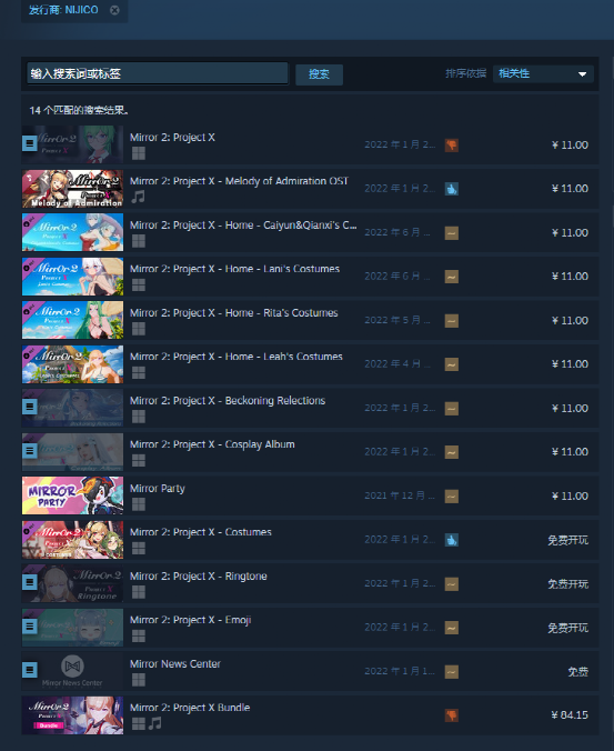 随后他们发现,《Mirror 2:Project X》的发行商不知何时已经“换皮”成了NIJICO,游戏最后也无惊无险的发售了。