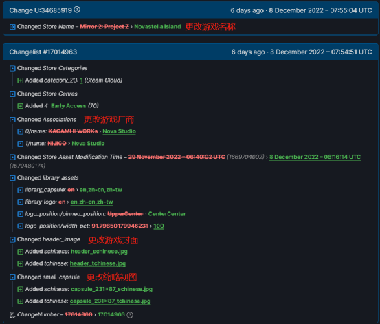 来自SteamDB的游戏商店历史修改记录:游戏截图早在12月1日就已经进行了替换
