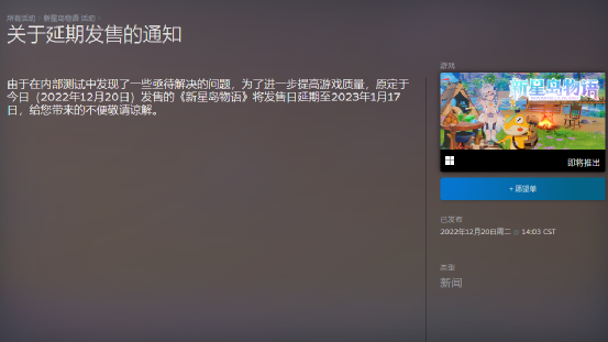 但他们等来的,只有《新星岛物语》官方延期发售的通知。摩拳擦掌的玩家们只好被迫同意“择日再战”,这场还未开始的“差评战争”,也被硬生生地延期到了2023年的1月17日。