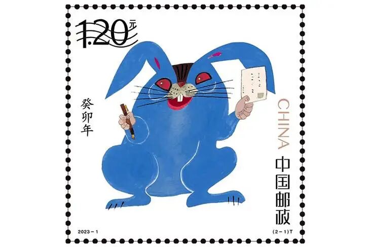 如果拥有足够多的讨论度就是生肖邮票的判定标准,那么 2023 年的兔年邮票已经超额达标了。短短几天,这个蓝色兔子邮票的图案已经被讨论了一波又一波。除了溢价严重的猴票,大部分人可能都不记得其他生肖邮票具体长什么样。今年的蓝兔是个意外,因为在一片邮票的喜庆祥和中,这只蓝兔子的风格过于突出了。赤红的眼睛,暗色的头顶,拟人化的手指,脚上的尖刺,黑色的胡子,讽刺的笑容,全部组合起来就能得到不同的评价。可能不是所有人都觉得这只兔子「有妖气」,但不够喜庆却是公认的。这像冥府邮票。