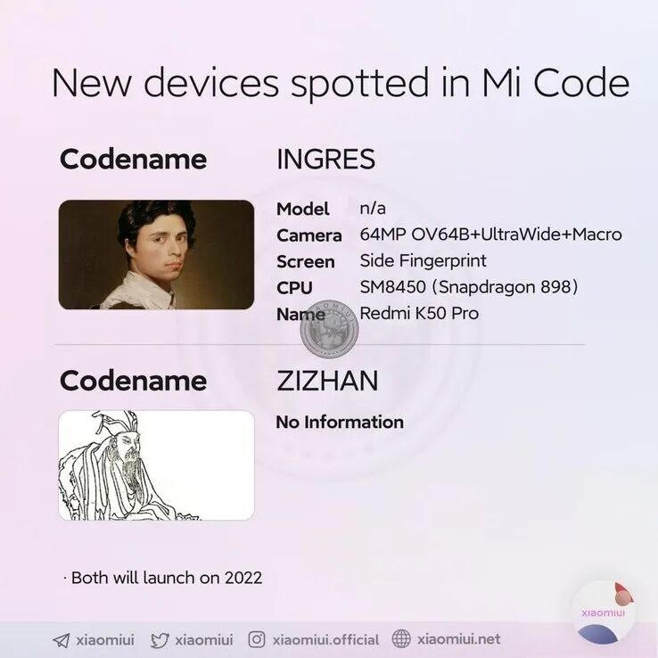 近日有消息称国外大神在MIUI中发现了一组代码,疑似Redmi K50系列新机,搭载骁龙898处理器,后置三摄,配备6400万像素主摄镜头,型号为豪威OV64B传感器。除此之外,还有其他爆料人也在最近爆出了Redmi K50系列的消息。爆料称该系列将拥有三款新机,该机除了在核心配置方面会有区别之外,其后置相机配置也各不相同,其中分别会配备4800万像素主摄、5000万像素主摄和1.08亿像素主摄。核心配置方面Redmi K50 Pro+的顶配版本将搭载骁龙898,Redmi K50 Pro或许或搭载骁龙888处理器。并且快充方面此前有爆料者还指出,Redmi K50系列的快充也会迎来升级,将首次搭载百瓦快充,预计最少是120W快充规格。不过需要注意的是,爆料表示120W快充应该只会配备在Redmi K50 Pro+超大杯型号上,而中杯和大杯机型可能不支持百瓦快充,外界猜测可能依旧会配备67W快充。此外在近期爆料博主@数码闲聊站 还爆料称Redmi很快就会推出一款价格更便宜的百瓦快充新机。结合之前的爆料来看,该机应该属于Redmi K40s系列。据此前消息,这次亮相的Redmi K40s可能就是之前海外发布的小米11T系列国内版本,当时在海外版推出了两款机型,其中低配版搭载了天玑1200芯片,是一款极具性价比的中端机型。