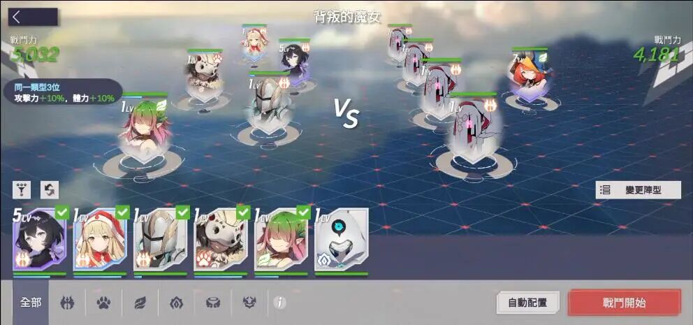 《永恒灵魂》的战斗模式很容易让人联想到去年底一度依靠音美爆杀东亚市场的《Memento Mori》。玩家在对局开始前需要选择派上阵的五位角色,并考虑合适的阵营和属性克制关系、阵型排布等。