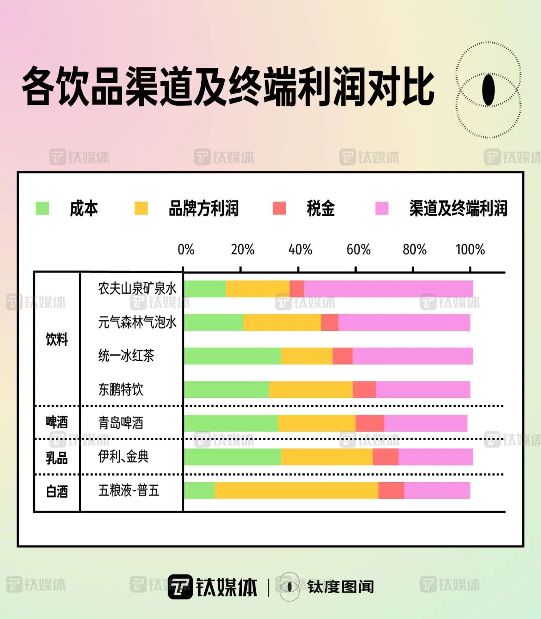 对比其他国家,2019年中国无糖可乐型碳酸饮料销售占比仅为3.4%,而欧美国家占比达到30%以上,其中英国占比达到63%,日本则达到了44.6%。许多业内人次借此乐观预测,中国依然处于无糖碳酸饮料发展初期,相较欧美国家至少还有十倍提升空间。不过,中国软饮料(包装饮用水除外)销售额增速数据显示,中国软饮料行业天花板已现,近年来保持个位数增长趋势,2014-2019年复合增长率4.83%,预计未来增速将进一步下降,2019-2024年复合增长率为4.54%。并且,受中国饮料下沉市场的售货渠道限制,品牌方想开辟整体软饮料市场,光靠营销和线上售货方式是不够的。中国各品牌方的渠道及终端利润数据显示,元气森林凭借单价比较高,能给到经销商、便利店等终端更多利润分成。如今农夫山泉等老牌玩家也注意到了这个问题,经销商、便利店等销售终端,正在展开新一轮较量。此外,软饮料市场还受到喜茶、奈雪的茶等新茶饮企业夹击。软饮界新产品未来也只能在固有的存量市场内,争得一片天地了。(本文参考数据来源:*国家统计局、*CEIC、*世界银行、*Euromonitor、*中商情报网、*中国产业信息、*智研咨询、*美团、*大众点评、*《第四消费时代》、*日本饮料协会、*伊藤园财报)点击下方关注我们,记得“星标”哦~
