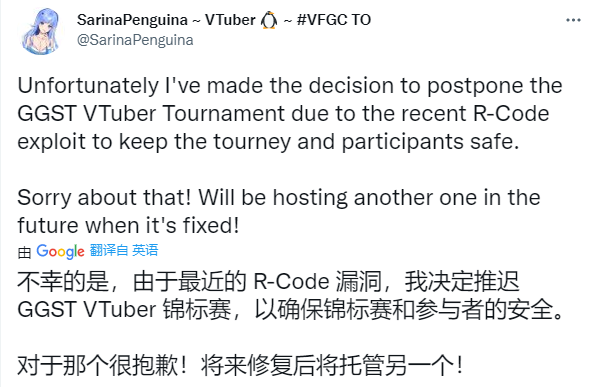 大型比赛一般采用线下比赛的方式,至少还能继续下去。至于民间的线上赛事,例如原定在1月6日举办的GGST Vtuber锦标赛,就不得不推迟,直至官方修复漏洞后再议。