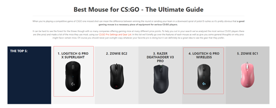 相信对购置外设有爱好的玩家们,都知道职业电竞选手的外设统计网站Prosettings。在Prosettings上,G PRO系列鼠标(也就是GPW和GPW二代)已经呈现出来了霸榜趋势。