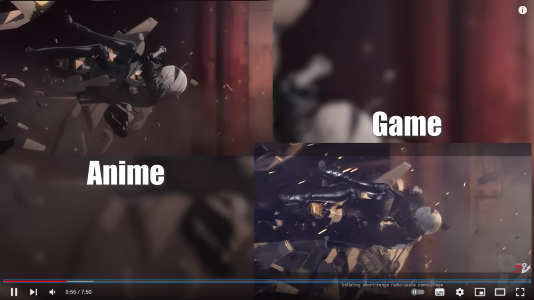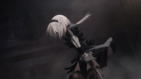 在整集动画中,A-1 Pictures将“还原”二字可谓做到了极致。动画的大量镜头都与游戏场景相对应,达到了几乎“完全一致”的程度。同时,动画内的音乐插入时机与台词选用,也都与《尼尔:机械纪元》如出一辙。