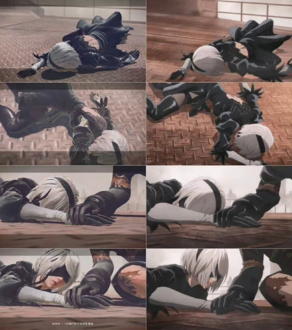 但《尼尔:机械纪元Ver1.1a》的实际表现,显然超过了这个水准。虽然动画的不少场景都选择了还原游戏分镜,但在具体的战斗构成上,由于游戏本身可操控性的影响,这部分内容就不能依靠还原,需要制作组自行发挥了。