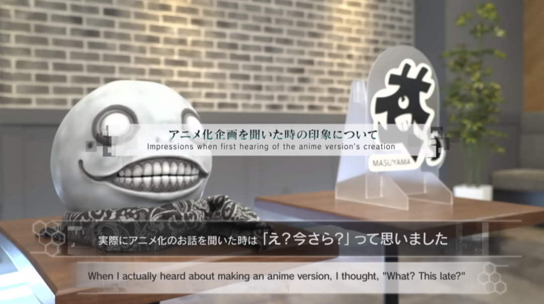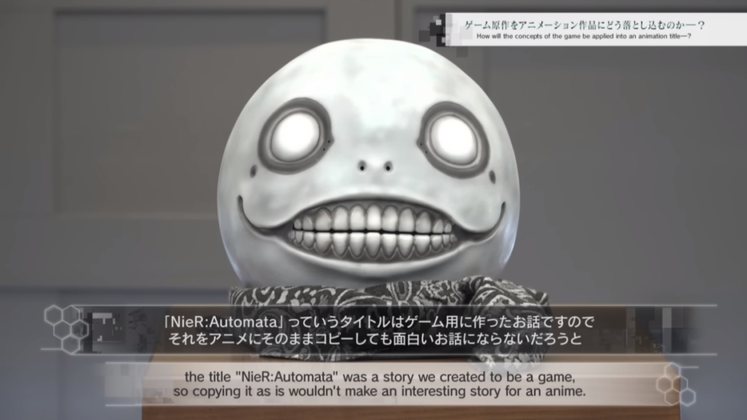 《尼尔:机械纪元》的动画并没有采用完全原创的剧本,而是以对游戏剧情的还原为主。这个选择并不是一蹴而就的,在动画的早期访谈中,我们可以得知该企划在初期的一些有趣故事。