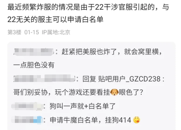 同一天,外挂团体警告22停止使用权限,否则将开始“无差别炸服”;还散布言论,声称他们正在准备一份白名单,能够让放弃与22和EAC合作的服务器免于外挂轰炸。