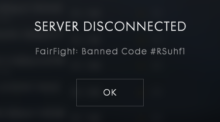 当日凌晨,大量玩家发现自己在游戏中被突然踢出服务器且被封禁,无法再次进入服务器。踢出原因中有官方反作弊系统FairFight(FF)的字样,还有串代码,写着“#RSuhf1”,这是封7天的意思,要是把最后的1改成0,那就是永封了。