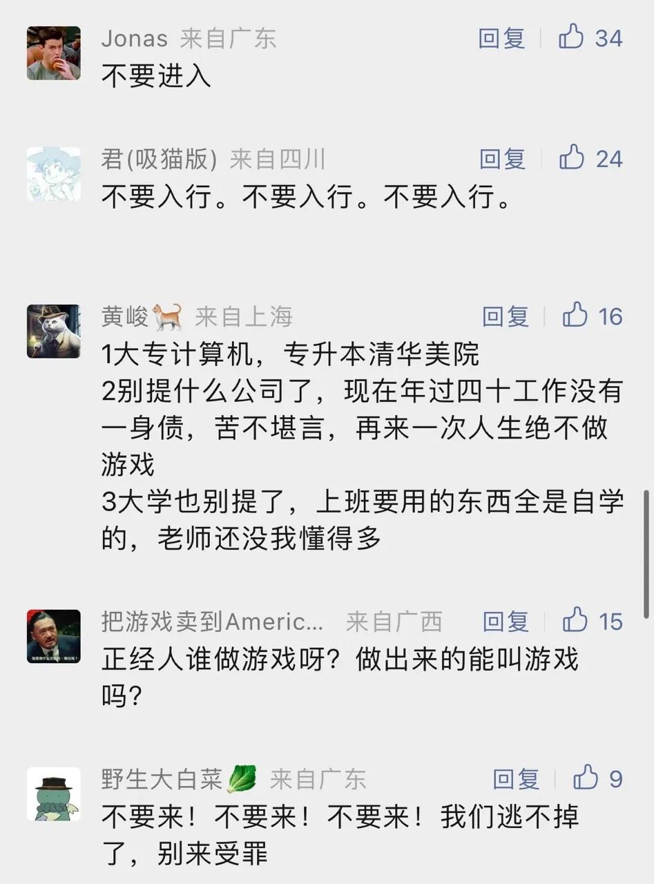 出人意料的是,这个问题的回答惊人的“一致”:建议别进入游戏行业,不知道其他人是否认同这个建议呢?当然,比较细心的建议也是有的。