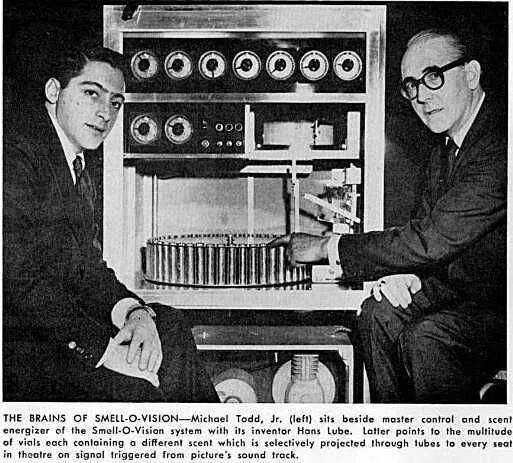 最终在1955年,劳伯才取得了《80天环游世界》制片人迈克·托德(Michael Todd)的赞助。次年,托德死于私人飞机事故,儿子小迈克·托德接了班。小托德和劳伯签订了一项协议,其中一条是将系统的名字改成大意相近却更口语化的“Smell-O-Vision”。