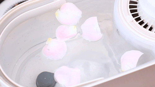 只有个头够大,才会达到较为理想的加湿效果,摩飞就不同了,核心技术用的是更新一代的辅热加湿。内置PTC发热器70度(睡眠档位为60度,强湿档位为70度)恒温加热,让加湿效率更高一点。说人话就是加了热蒸发,在吹风的同时加热,双重buff,相对的就会比普通的冷蒸发加湿器效率更高!为了验证是不是热蒸发,我用一朵鲜花放在出雾口,很快这些看不见的微热水汽遇冷就在花上凝结成了露珠~而且用自来水的话,加热也会加速杂质沉淀在下面,安全也更上一层,易敏人群、老人、孩子都能接受。摩飞的水槽还添加有抗菌剂,水流过之处开启99.9%以上的抑菌模式,有检测报告。再加上创新的辅热加湿方式,所以没有滤网/芯,真正做到0耗材,没有后续烦恼,要知道一般的加湿器滤芯/网3-6个月就要换一次,几十几百不等,常年累月费时费力。空说效率提高也不行,还是要真正体感空间湿润,别看摩飞加湿器体积小,加湿量还是很不错的。空姐在盛满的水箱里洒了一些花瓣,让你直观看看,下水到底有多快!一个小时之后,水位嗖下降了这么多,这些水实打实扩散在了空气中。官方数据显示,摩飞的加湿量达到了300ml/h,这就是足足在房间的空气里注入1瓶水呀。据摩飞实验室实测,30平的房间,湿度从40RH达到了70RH,湿度达到了,皮肤水润润,身体从内到外的舒畅,半夜也不会被干到渴醒了。更让空姐种草的是,机器本身自置灵敏湿度感应器,能智能调控房间湿度,开启自动让房间湿度控制在50RH-70RH。(经研究人体感觉为舒服的一个适度区间)它有四个档位,分别代表四种定制环境湿度,睡眠、舒适、湿润、强湿。在睡眠、舒适、湿润3种模式下,机器会实时检测室内温度,达到湿度就自动停止加湿。
