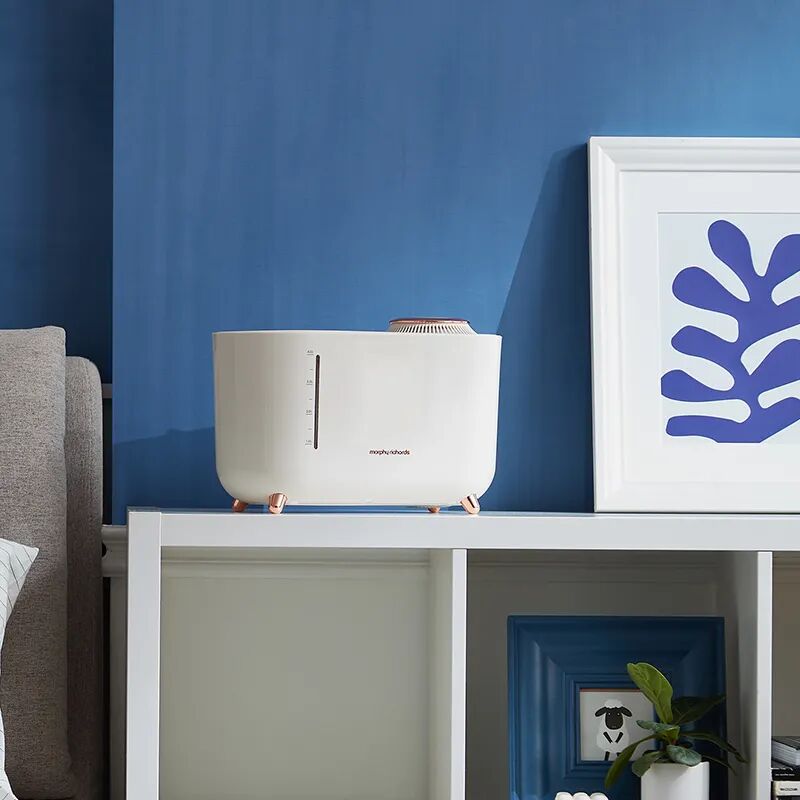 强湿档则会在持续2小时检测到湿度达到70%湿度后,才会停止继续加湿,突出一个省心。不会因为房间湿度不够皮肤干燥、呼吸不畅......也不会因为湿度过高滋生尘螨细菌,你和自在生活之间也许就差一台加湿器。它还有着足足4L的容量,一大桶水倒进去,仍可以正常启动。够大的水箱+智能调控让续航也达到了13个小时以上,一晚上都在恰好的环境中安睡,太美好!真实力之外,摩飞也会带给人很多惊喜,辅热加湿模式让它吹出来的都是体感约37度左右的润风。用了就知道确实引起舒适,旁边的同事小姐姐作为重度鼻炎患者,表示没事凑上去熏一熏蒸一蒸,特舒服。新升级的这款还可以远程操控了,六米无死角射频遥控器,躺平就可以操纵房间湿度。我试了下,开了最大档位让大家感受,他们都纷纷表示:你开了?是即使开了强湿模式在旁边看书也完全无感的水平。不存在的运行声音如不经意的微风,阵阵拂面输送湿润。另外,科技感的大屏幕,还只有两个按键,无脑操作简约大气,谁能不爱呢。高高的颜值,小巧的体积,放在客厅、卧室、办公桌都不违和,都市丽人时刻水润的秘诀找到了~摩飞源自1936年的英国,在二战军工的熏染下,Morphy Richards以其强大的科技含量,迅速的成为了英国高端的小家电品牌之一。专业的英国工程师队伍确保了所有产品都以高端的品质和独特的设计满足消费者的需求。目前,全球有超过一亿的精英家庭正在享受摩飞家电带给他们的便利及享受。
