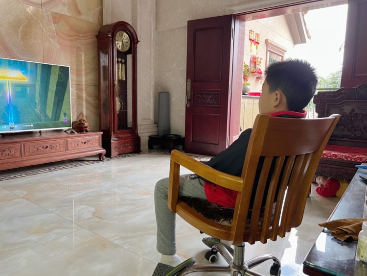 过年俩表弟来我家玩游戏,他哥在玩塞尔达,弟弟趴在地上偷偷看着。