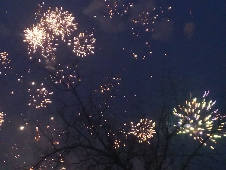 除夕夜里家附近会不停的放烟花,响度惊人,一度被我称为空袭。这是院子里的枯树和烟花的合影