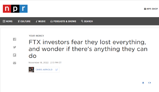 实际上就在前不久(2022年11月),世界第二大(有人认为是第一大)虚拟货币交易平台——可以说是“规模超大”,“很有信用”的第三方担保机构——FTX交易平台,宣告破产。无数没有来得及撤走资金的投资人们,损失了所有的虚拟货币资产。这一次的币圈浩劫所造成的直接经济损失,无可估量。