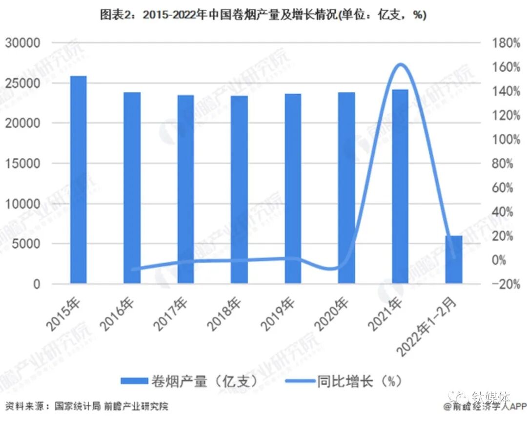 对于企业来说,上市后业绩翻倍并不是什么新鲜事。但在近几年来,我国的卷烟行业近乎原地踏步。2016年,我国卷烟产量为23825.8亿支,2021年为24182.4亿支,只微增1.5%。
