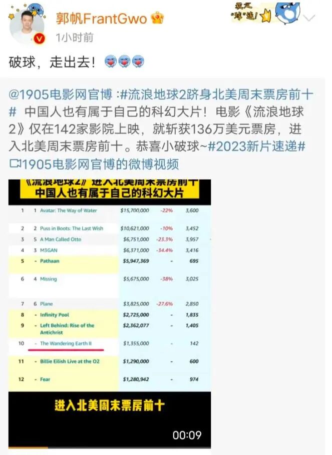 《流浪地球2》虽然在海外取得了不错的表现,如斩获136万美元票房后,进入了北美周末票房前十;同时在英国上映当日,电影进入当地票房TOP10,成为全英近15年来票房最高的华语片。不过,如果能够像好莱坞电影般在全球上线,获得大量排片的话,应该能在海外取得和国内相同的成绩。