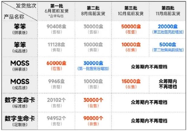 截至目前,该项目众筹金额累计超1.2亿元,达原目标的1000余倍。且成交数超过52万,仅剩三个价位产品在售。