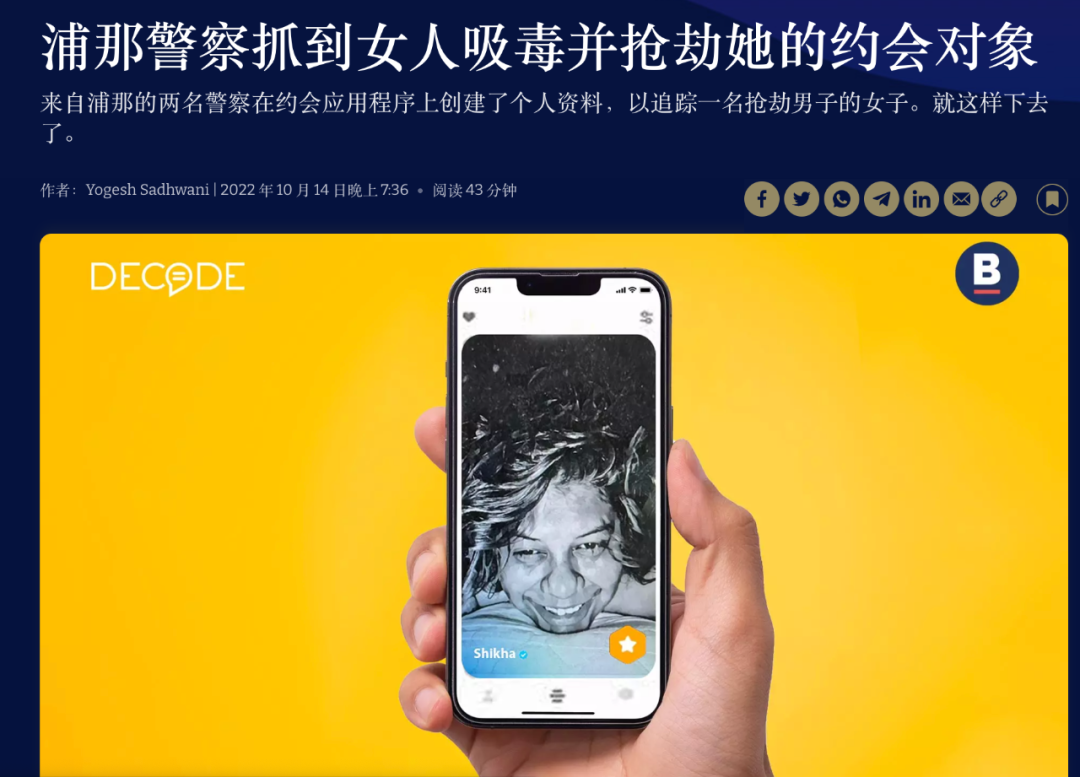 一队位于浦那的警察就曾在交友软件Bumble上办过一个传奇案例:一位女性吸毒者在Bumble上横行霸道,抢劫自己的约会对象。但由于受害人不愿透露太多信息,导致案件未有进展。