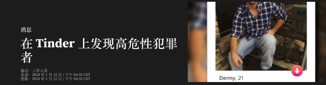 在诸如Tinder等国外交友平台监管不力的期间,有大量犯罪/前犯罪份子都在各种App上展露过头角。而一些善良的用户在发现不对之后,只能通过网络发帖等方式奔走相告。