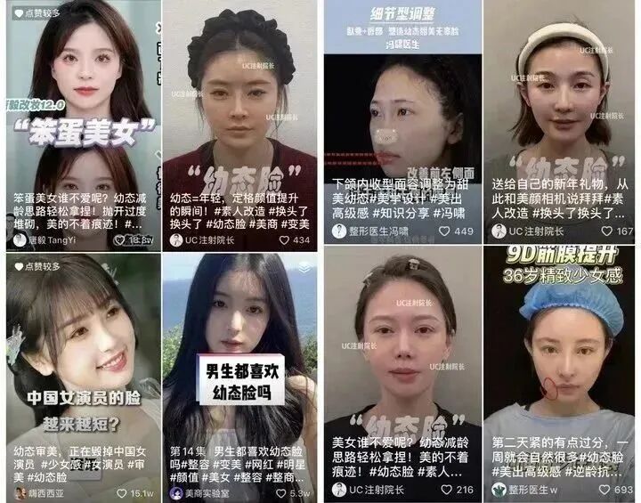 古装经典之作《仙剑奇侠传一》的翻拍,今年很快就要来了,但主角公布后便引起网络一片哗然,网友们纷纷吐槽别再糟蹋经典。新剧女性角色和原版对比,仔细一看,我只觉得新版一个都记不住,拼图时还很容易弄混。下面从左至右,分别是主要女性角色选角:赵灵儿、阿奴、林月如。客观地讲,新版选角要超越原版难度是非常大的,那就降低一点要求,好歹每个角色画像再有个人特色一点吧。再仔细看,新版三个人还是有点傻傻分不清,而原版每个人物的风格和气质都各有千秋,也能记得住。再把时间往前倒一点,8090 后一定都对这部古装剧记忆颇深——黄奕主演的《上错花轿嫁对郎》。没错,这部剧也要被翻拍了,同样对外称 2023 年播出,下面为原版与新版女主选角对比,从左至右角色:李玉湖、杜冰雁。大家看图便会有比较,今天我们不谈论新旧古装剧的选角本人,我们只总结选角变化的共同点看能聊出点啥:新版的角色画像普遍缺少了五官的凛冽和钝感,眼睛越来越圆,脸越来越尖,磨皮质感下脸越来越白,整体形象越来越显年纪小。总结下来,就是回到了「白瘦幼」「幼态脸」的单一审美环境。更不用说如今充斥着流量网剧的今天,大部分古装女性角色几乎看不到任何具备个体精神内核的输出,统一遵从傻白甜的设定、除了追求爱情,一无是处,美美充当花瓶即可。而以前的古装美女可不是这样,她们不仅在扮相上各有千秋,每个角色也同样散发着灵动自由的思想内核,无论正反派,都非常立体丰满。回顾下八九十年代的女星例如林青霞、张曼玉、王祖贤等等(欢迎大家补充你心目中的美人),似乎每一位都很独特美好,过目不忘,戏路多元职业时长也相对长久。你一定想不到,民国戏里饰演「胭脂扣」女主的梅艳芳当年也只有 23 岁,却演出了一位成熟女性的灵魂和韵味。而在古早电视剧「风云」里饰演武林第一美人的田丽,当时也已快 34 岁。陈红在演绎 94 版「三国演义」貂蝉一角时才 18 岁,虽然这被构建成女性最美好的年龄,但陈红的演技丝毫和「幼」不沾边,貂蝉举手投足之间的娇媚和精明被展现的淋漓尽致。被翻拍成网剧的《新白娘子传奇》,白素贞这么聪慧贤德的女性形象,被改成卖去青楼还替贼人数钱的戏码,被大家纷纷吐槽是否「洗钱成功」。那些被资本裹挟的流量爱豆,有几个能让你记住又有几个顺利上岸呢?大家都嗤之以鼻的单一审美正在身边悄然发生,人人都在被动接受着一场全社会的审美倒退。现在越来越多古装剧遭遇这样的审美滑铁卢,那被推崇的「白瘦幼」「幼态脸」审美背后的动机是什么,我们一起来探究一下。首先说明一下,我们并非反对「白幼瘦」「幼态脸」本身,也不针对任何个人,而是反对单一的、被利用的、 被刻意制造的、被环境裹挟的审美侵袭。简单来说,它就是强调女性对「幼」的全方位塑造,妆容、穿搭、行为等显得年纪小,近似孩童。不知道的可以往抖音上搜「萝莉」「幼态脸」等,你将收获一大批符合幼态脸的女性形象以及美妆、整容建议。特征总结,体现在脸型短圆脸、卧蚕明显、颧骨下方没有凹陷,眼型圆。这也是比较符合男性凝视下的幼态审美,无攻击性,温柔,甜美。拼图来自:她姐。注明:文中图片仅示例,并非针对艺人及网红本身幼态、幼小、不具备攻击性,让人充满保护欲。穿着童装蓬蓬裙和黑丝在镜头前扭来扭去的擦边女生,又或者穿着性感做一些明显低能儿的表演行为的女网红,在抖音上随便刷刷比比皆是,背后隐藏着很多「性」的元素。再去联想下韩国著名的犯罪电影《熔炉》《素媛》,都体现了「幼」字背后的「性」,以及他们无力无法反抗被侵害的现实境遇,这种因性引发对「幼」的权利式压制,最直接联想还有韩国女团不断有成员自杀的事件。另外,女性到今日之所以如此被单一标准化的美裹挟,还是和社会资源在两性中分布不均有根本联系。现实社会,我们需要承认的是整体男性群体本身就比女性群体要掌握的社会资源更多,天秤本有倾斜之下,女性只能通过「武装」自己丰富武器库,来获得更多的安全感,而武装的便是男性凝视下的审美偏好。3. 还有没有一种可能,审美倒退的根源是被蓄意操纵?确实在短视频、流量为王的时代,我们目所能及的,更多是景观,是资本通过流量「推送」给我们的东西。每次所谓「爆款」的内容,便能被流量加持,人们纷纷效仿,这种看似无病无害的内容传播,本身就是一种人为制造的审美霸权行为。为什么可以不需要好唱功、好演技?因为不符合「成本-收益」最大化原则。唱功、演技这些不但要靠天赋,更需要艺人的努力与进取心,俗话说「台上一分钟,台下十年功」,但是资本能有这样的耐心么?一边是有演技的资深女演员没有戏演,一边是演技全无的年轻女生被硬捧登台,背后可能是一场赤裸裸的掠夺游戏。在古代,古人以「三寸金莲」为美,在当时人们认为是合理的,而在现代人看来,这也是一种非常病态畸形的审美。正因为缠足在发展中逐渐囊括了地位、荣辱、文明的道德涵义,它才经久不衰。清末「开眼看世界」后,缠足便被剥去了「高贵」的外衣,成为了落后、野蛮的陋习,最终在民国时期遭到取缔,结束了其历时千年对女性的压迫。在古代,亚里士多德认为奴隶制是合理的,并认为奴隶生来就比常人低劣,而西方国家资本扩张之路也是从血腥、臭名昭著的黑奴贸易而来,