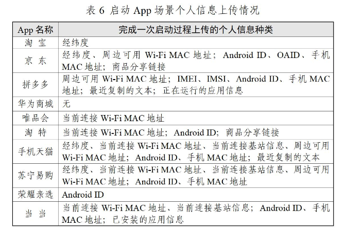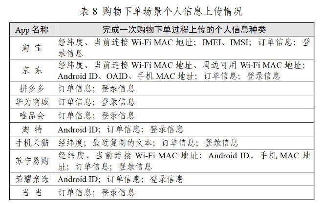 也随着这几年,各家智能手机厂商和手机用户对于个人信息保护的关注度逐渐提升,越来越多的用户在使用App时和购买手机时更加关注起隐私保护的相关功能和服务。近日,国家互联网信息办公室转发了中国网络空间安全协会、国家计算机网络应急技术处理协调中心发布的“网上购物类”App个人信息收集情况测试报告。报告选取了19家应用商店累计下载量排名前10位的“网上购物类”App进行测试,包括淘宝、京东、拼多多、华为商城、唯品会、淘特、手机天猫、苏宁易购、荣耀亲选和当当。信息来源:中国网络空间安全协会、国家计算机网络应急技术处理协调中心据介绍,测试场景以完成一次网上购物活动作为单元,包括启动App、搜索商品、购物下单3种用户使用场景,以及后台静默应用场景。各位小伙伴可以与小编一起来看看平时常用的购物软件还在收集什么用户信息?以及用怎样的频率进行收集?首先是系统权限在三种场景中的调用情况,主要为位置、设备信息、剪切板、应用列表4类系统权限,测试中其他权限暂未发现。在启动App场景中,调用系统权限种类最多的为拼多多(4类),调用系统权限次数最多的为苏宁易购(357次)。在搜索商品场景中,调用系统权限种类最多的为淘宝(3类),调用系统权限次数最多的为苏宁易购(152次)。在购物下单场景中,调用系统权限种类最多的为手机天猫(3类),调用系统权限次数最多的为苏宁易购(255次)在后台静默场景中,调用系统权限种类最多的为拼多多(4类),调用系统权限次数最多的为苏宁易购(1199次)。此外,报告还调查了10款App上传的购物信息种类,一共6种,包括位置信息、唯一设备识别码、剪切板内容信息、应用列表信息、购物信息和登录信息,具体情况如下:数据来源:中国网络空间安全协会、国家计算机网络应急技术处理协调中心在启动App场景中,个人信息上传种类最多的为拼多多(4类)。数据来源:中国网络空间安全协会、国家计算机网络应急技术处理协调中心在搜索商品场景中,个人信息上传种类最多的为拼多多和手机天猫(均为4类)。数据来源:中国网络空间安全协会、国家计算机网络应急技术处理协调中心在购物下单场景中,个人信息上传种类最多的为淘宝、京东、苏宁易购(均为4类)。数据来源:中国网络空间安全协会、国家计算机网络应急技术处理协调中心在后台静默场景中,个人信息上传种类最多的为拼多多(3类)。综合来看,在用户开始关注起个人信息安全后,不少购物软件已经对用户的信息获取更加的克制,但也有App依旧保持高强度的获取用户的个人信息,不仅占用系统资源还有可能对用户个人信息安全造成威胁。个人信息安全不是只靠手机厂商和App开发者单独努力就能保护好的,需要多方的努力合作才能更好的保护用户的个人信息,让用户更加安心的在日常使用智能手机。![]()
