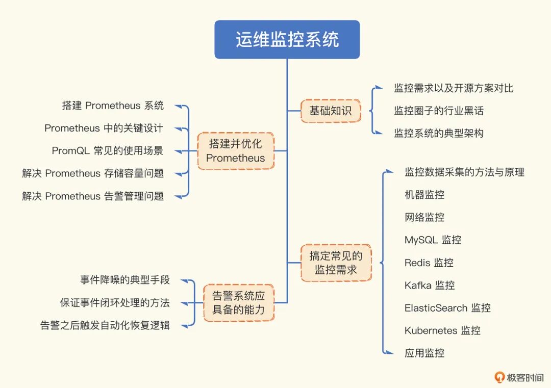 本文内容来自我在极客时间开设的专栏《运维监控系统实战笔记》,合计 24 篇内容,从基础知识讲起、对比介绍 10 大开源监控方案,带你搭建监控系统,实现业务、应用、组件、资源四大场景的监控需求。